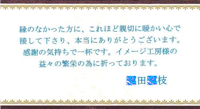 あなたとは、わずか3回しかお会いしていません。しかし、あなたとの出会いは私達にとって決して忘れることの出来ないものとなりました。
